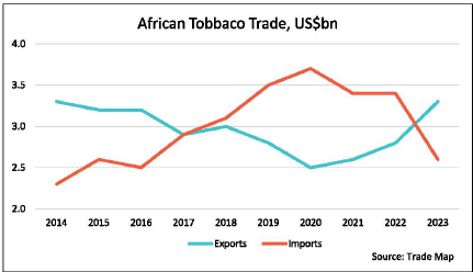 Sin taxes affect cigarette consumption, especially in Africa, where discretionary income is low evidenced by a shift to self-rolled cigarettes from local leaf production escaping those taxes.
